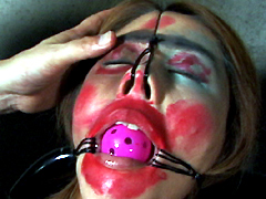 屈辱よだれ化粧…こんな目に遭ってるのに睨み返す、キツさが可愛い。おざなりな抵抗。ポーズだろ?それ。縛られて自由をなくしたその太股で、顔を強くはさまれたい。